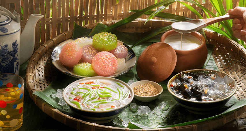 酸味がきいたソウのスープや、甘酸っぱいソウの砂糖漬けは、 暑い日にぴったりの味。ハスのチェーも外せません。